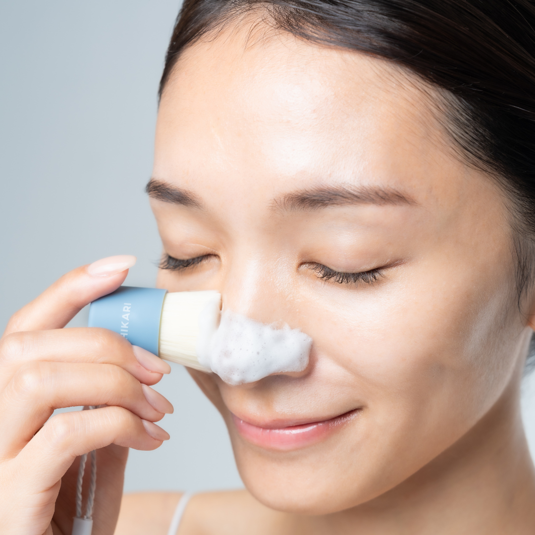 ブラシは毛穴よりも細い60μm(約0.06㎜)の柔らかい毛を採用しております。なでるように使用することで摩擦を抑えながら、古い角質をや角栓を掻き出します。