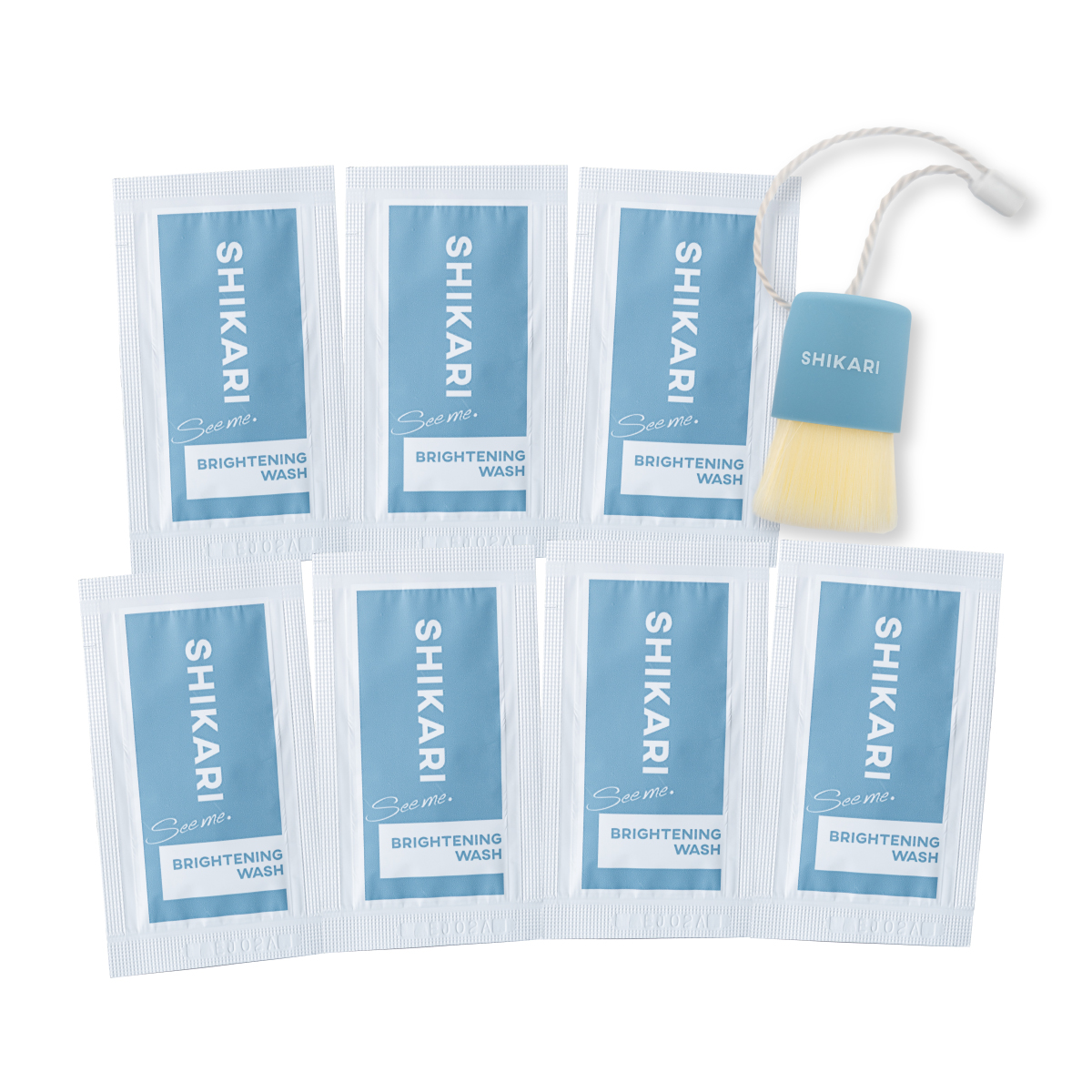 BRIGHTENING WASHノーマルのパウチが7包とミニブラシがセットになったトライアルセット。
